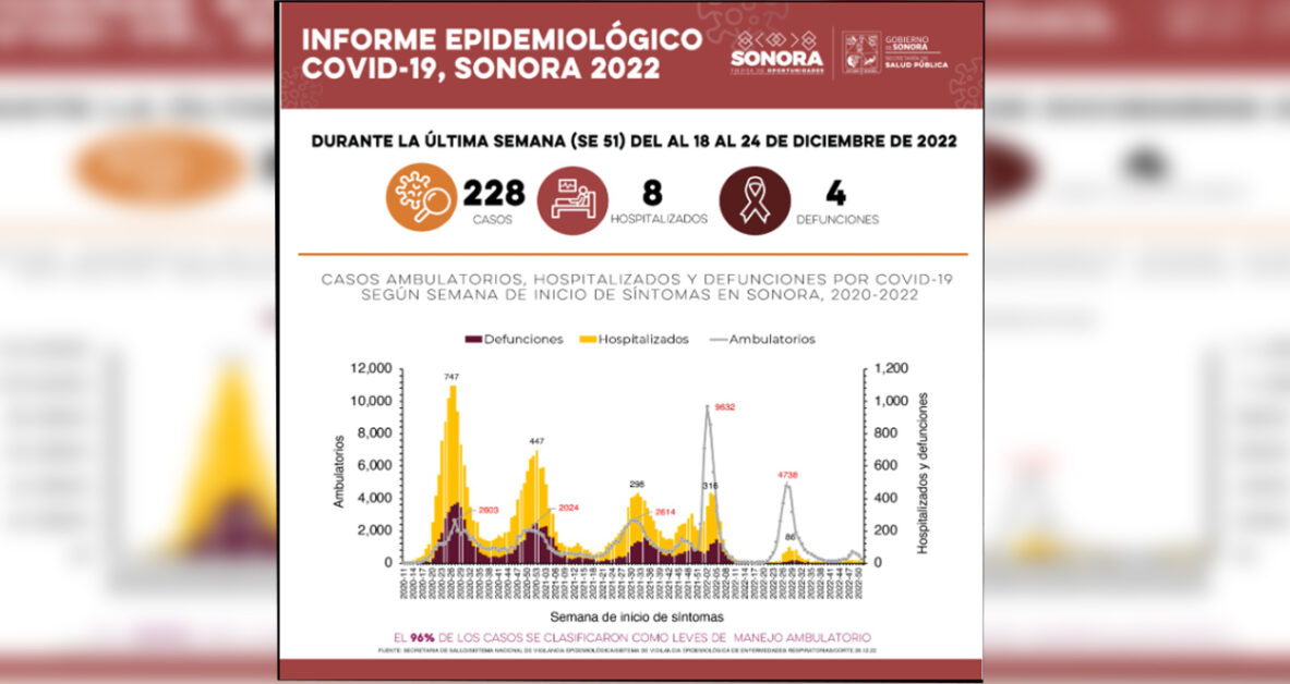 Durante la semana epidemiológica 51, que abarca del 18 al 24 de diciembre, la Secretaría de Salud (SSA) confirmó 228 casos de Covid-19 y cuatro defunciones a causa de la enfermedad.
