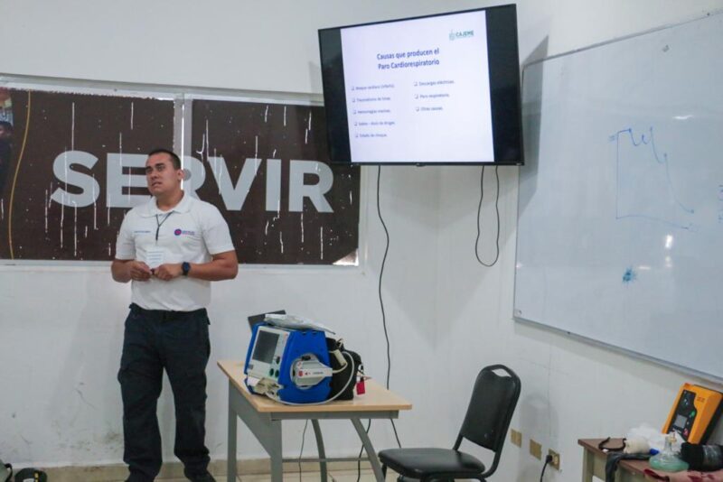 Durante la capacitación se abordaron temas como Reanimación Cardiopulmonar (RCP), el método que se aplica mediante maniobras de emergencia que se realizan cuando una persona ha dejado de respirar y su corazón ha dejado de latir.