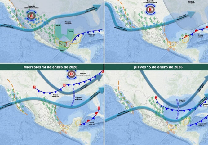 Asimismo, se mantendrá un ambiente muy frío, durante la noche y madrugada, sobre la región montañosa de Sonora. Se esperan temperaturas desde los -5°C a los 4°C, con posibles heladas sobre municipios de dicha región.