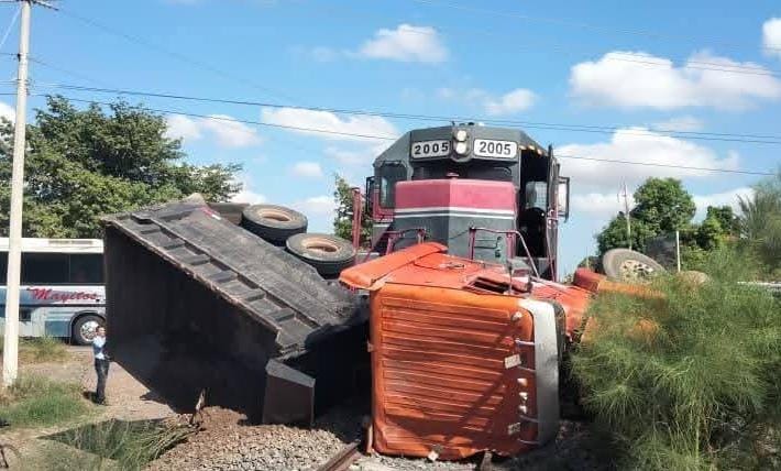 El chófer de un dompe fue embestido por el tren carguero que transitaba de Huatabampo a Navojoa con 40 furgones repletos de trigo.