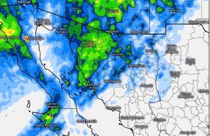 Dicho sistema, en interacción con una vaguada polar y una circulación ciclónica en altura, generará vientos fuertes a muy fuertes (+70 km) con tolvaneras, marcado descenso de las temperaturas, además de probabilidad de chubascos y lluvias moderadas con puntuales fuertes (5 a 45mm) y acompañadas de descargas eléctricas en Sonora.