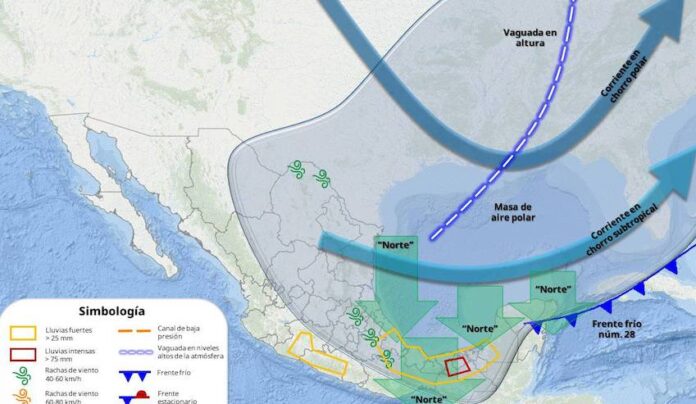 Para hoy, la *corriente en chorro subtropical* generará rachas de viento fuertes (+60 km/h) sobre municipios costeros de Sonora.