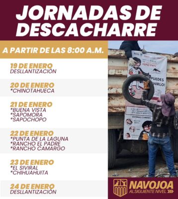 El ayuntamiento de Navojoa organiza recorridos en comunidades para eliminar cacharros y prevenir la proliferación del mosquito transmisor del dengue. Consulta las fechas y localidades en la imagen.