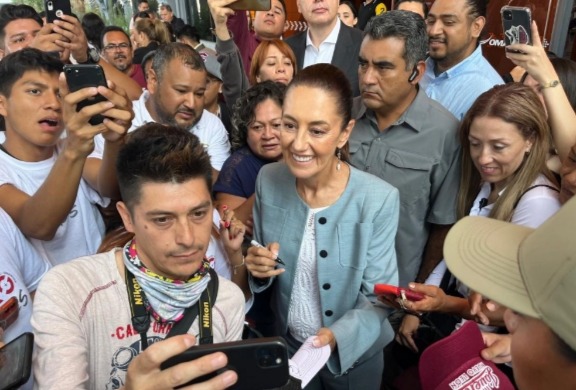 La candidata concluyó la breve entrevista y se enfiló a la salida, mientras candidatos, parte de su equipo y simpatizantes comenzaron a corear “presidenta, presidenta”.