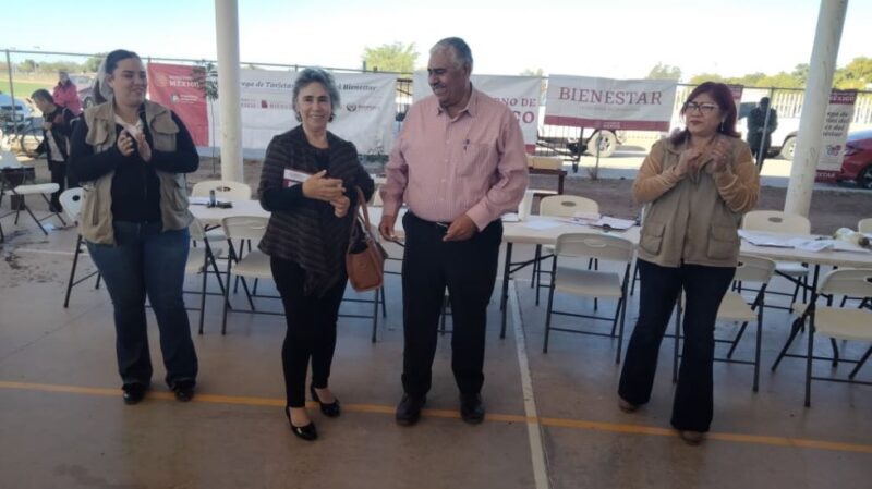 Ana Raquel Almada Corral, encargada de los Programas Sociales del Bienestar en el Sur de Sonora, señaló que el objetivo del gobierno de la Cuarta Transformación es mejorar la posición y protección social de todos los adultos mayores y de las personas con discapacidad.