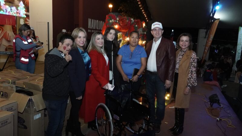 En el evento, Jorge Alberto Elías Retes y la presidenta de DIF entregaron las primeras 30 sillas de ruedas a personas vulnerables, asimismo pusieron en marcha las luces navideñas tanto en la Plaza Santa Fe Springs como en el Museo Regional del Mayo.
