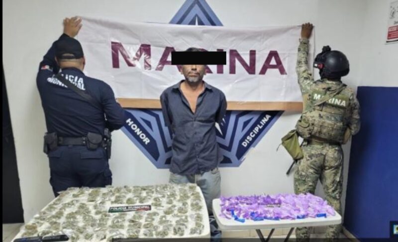 Como resultado de las acciones conjuntas del operativo de seguridad entre la Policía Municipal y elementos de la Marina, se logró la detención de cinco personas presuntamente relacionadas con delitos contra la salud, así como el aseguramiento de diversas sustancias ilícitas en distintos puntos del municipio.