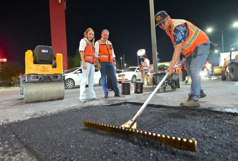 Acompañado por Astarté Corro Ruiz, titular de la Dirección General de Desarrollo de Infraestructura (DGDI) y personal operativo de la dependencia, Toño Astiazarán recorrió la zona intervenida en el cuerpo norte de la vialidad, en su cruce con el bulevar Morelos y destacó que se realizan operativos de día y de noche para avanzar en el mantenimiento de las calles.
