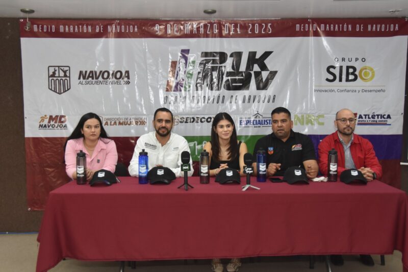“Pedimos a todos los navojoenses que estén atentos, salgan a ver el maratón, sean comprensivos y respetuosos de las zonas restringidas, queremos que el evento resulte exitoso y quede como precedente para los siguientes años”, comentó el funcionario, en compañía de Erika Díaz Peña y Joel Becerra León del Comité Organizador, así como Lourdes Luque del patrocinador Chevron.