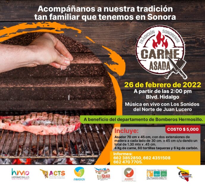 Hermosillo, Sonora- La primera celebración de la Gran Carne Asada, que organizan la Dirección de Turismo Municipal y Trip Sonora, se llevará a cabo este sábado 26 de febrero en el bulevar Hidalgo, en la que se espera la colocación de 50 asadores y la participación de empresas locales.