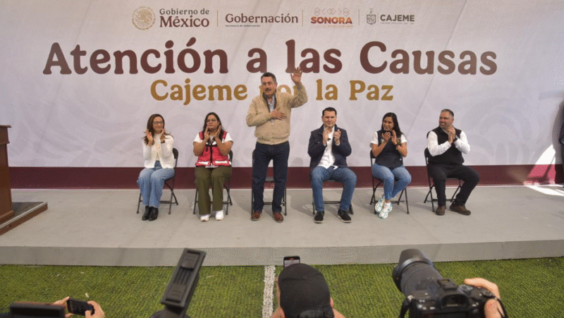 Mientras que Areli Rojas Rivera, coordinadora de Programas y Proyectos de la Secretaría de Gobernación, indicó que, como parte de las estrategias para fortalecer los lazos comunitarios y promover la cohesión social que impulsa la Presidenta Claudia Sheinbaum, este día se realiza en Cajeme la Sexta Feria de la Paz, donde a través de módulos fijos, de los tres niveles de gobierno, para atender los requerimientos ciudadanos y brindar servicios de salud, taller de primeros auxilios, higiene en niñas y niños, revisión dental y salud bucal, desparasitación, taller de cuidado animal, educación nutricional, tipo sanguíneo y medición de glucosa, así como atención médica gratuita, toma de presión arterial, consulta médica primaria, prevención de cáncer de mama, dotación de medicamentos, entre otras acciones sociales.