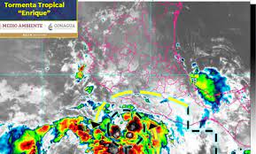 El Servicio Meteorológico Nacional (SMN) informó en un comunicado que durante las próximas horas de este viernes, 25 de junio de 2021, la tormenta tropical Enrique provocará lluvias fuertes en zonas de Colima, Guerrero, Jalisco y Michoacán, así como puntuales en Oaxaca.