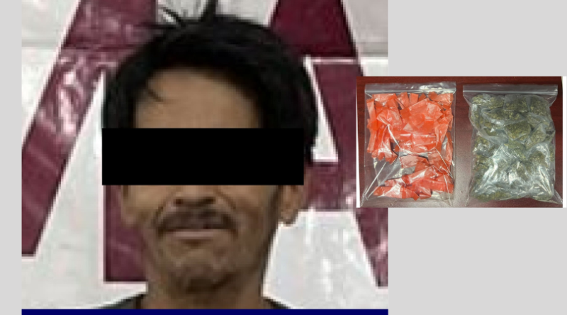 La persona fue asegurada al encontrársele 60 envoltorios con sustancia granulada y 60 más con hierba verde con características físicas similares a un narcótico, motivo por el cual fue informado de sus derechos y puesto a disposición del Ministerio Público correspondiente.