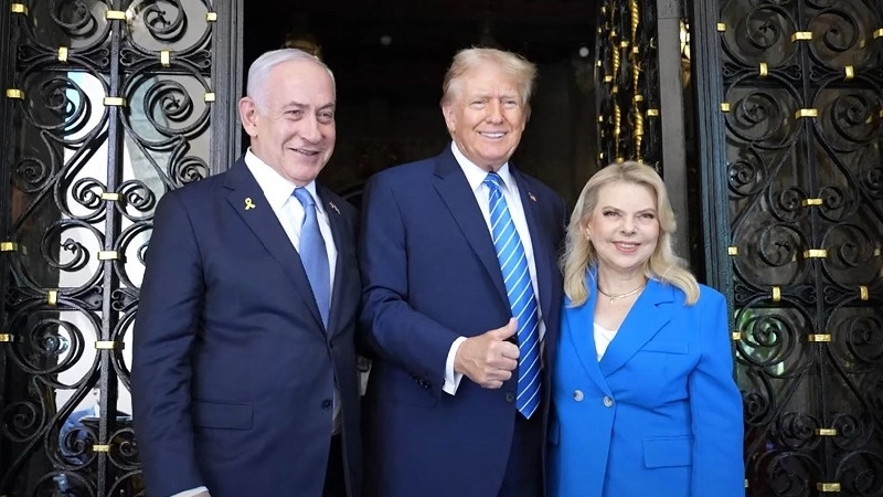 Trump saludó al premier israelí y a su esposa, Sara, en la escalinata de piedra de su mansión de Florida.