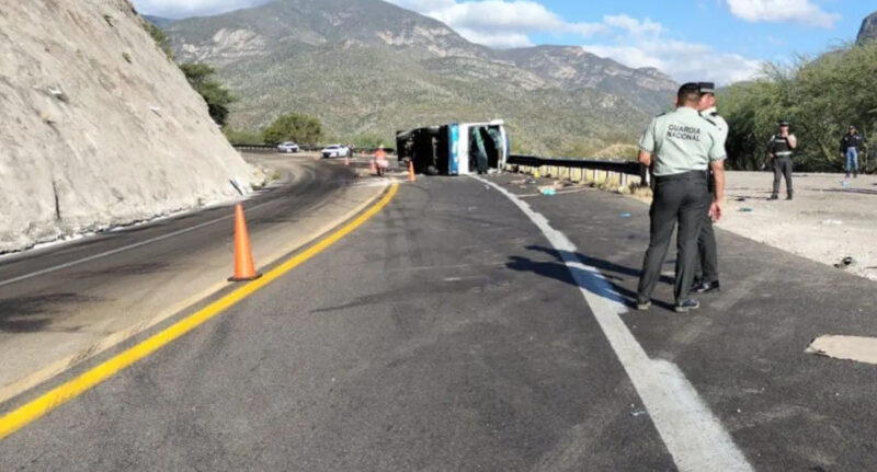 Al menos 18 migrantes murieron y 27 más resultaron heridos tras la volcadura de un autobús en la autopista Oaxaca-Cuacnopalan.